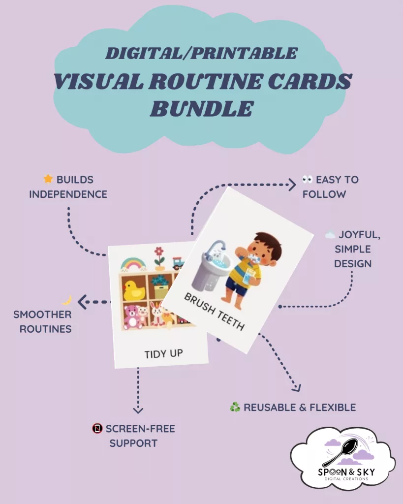 Hi, I’m Lily — mum, maker and founder of Spoon & Sky. When my boys were small, our home was loving… and chaotic. I wanted simple, visual tools that gave us calm without demanding extra energy or elaborate planning.