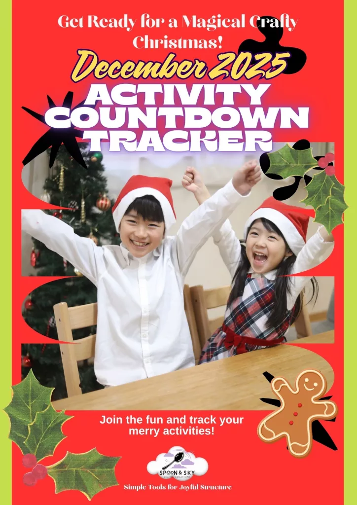 Designed to make December feel magical (without the stress), this printable pack includes 24 low-prep festive activities and 7 joyful New Year prompts that blend play, creativity, and calm connection. From baking day to kindness acts, cosy crafts to mindful moments, each prompt helps your family build excitement gently — one sparkly day at a time. Launching this November!