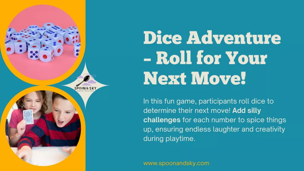 Create a key: 1 = hop like a frog, 2 = crawl like a bear, 3 = spin, 4 = sing a line of a song, 5 = tell a joke, 6 = do a superhero pose. Roll and play!