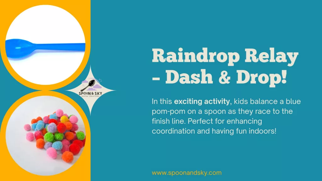 Cut paper raindrops, scatter them around the room, and challenge kids to collect them all into a “puddle” (basket).