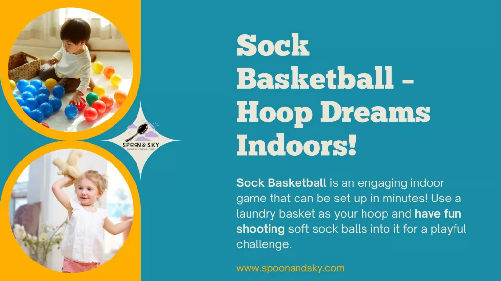 Roll socks into balls and use a laundry basket or box as a hoop. Try different distances or set a timer for speed rounds.
