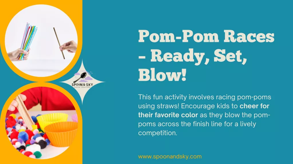 Tip: For younger kids, switch to a “gentle blow” game — how slowly can they move their pom-pom?