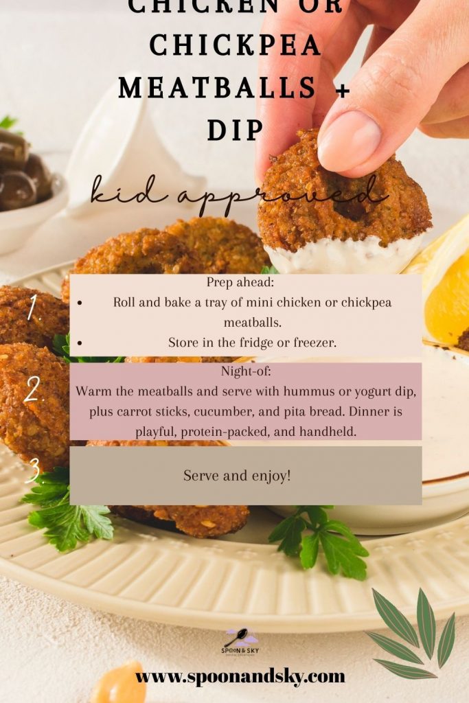 4. Mini Chicken (or Chickpea) Meatballs with Dippers