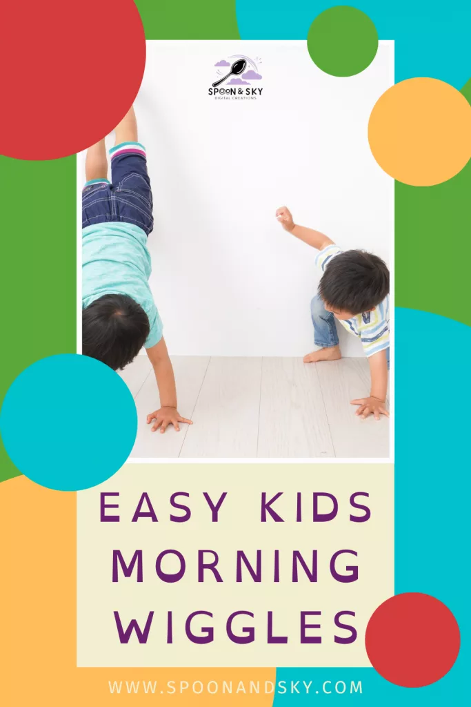 At Spoon & Sky, I call this the Wake & Wiggle Routine — a short, joyful series of stretches and sensory moves to help kids (and parents) start the day regulated, focused, and calm.