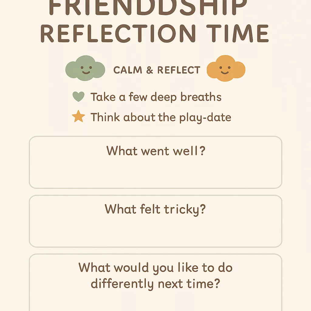 🪄 Try this: After a tricky playdate, take five minutes for “Friendship Reflection Time.” Ask:
