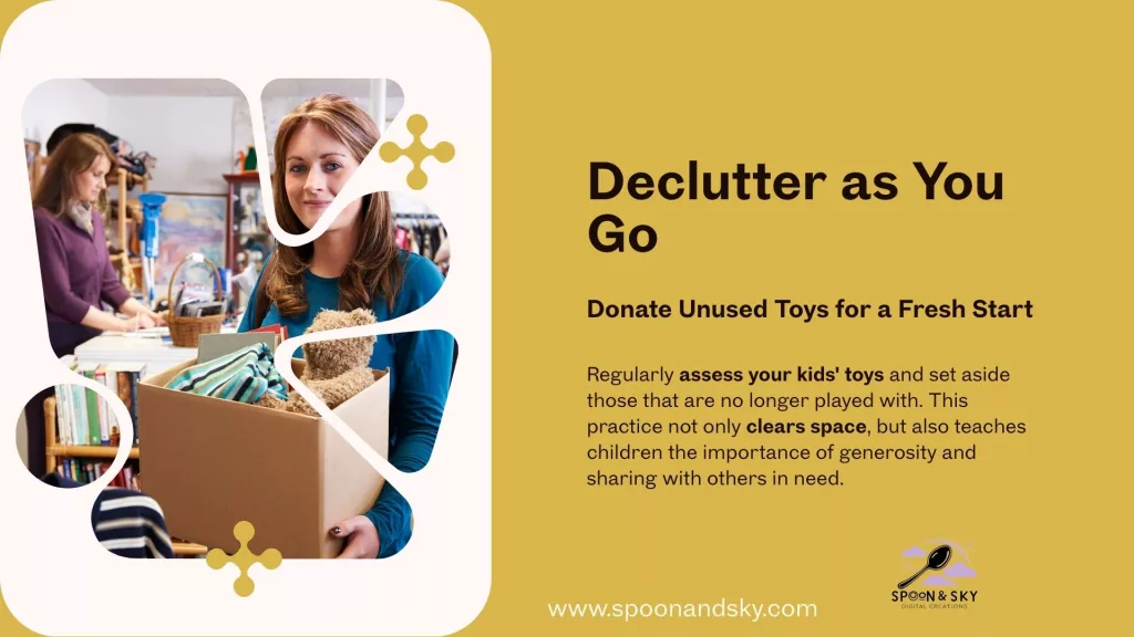 When a toy comes out of storage and your child barely notices it, that’s your cue. Pass it on, donate it, or repurpose it. This keeps the toy collection manageable and meaningful.