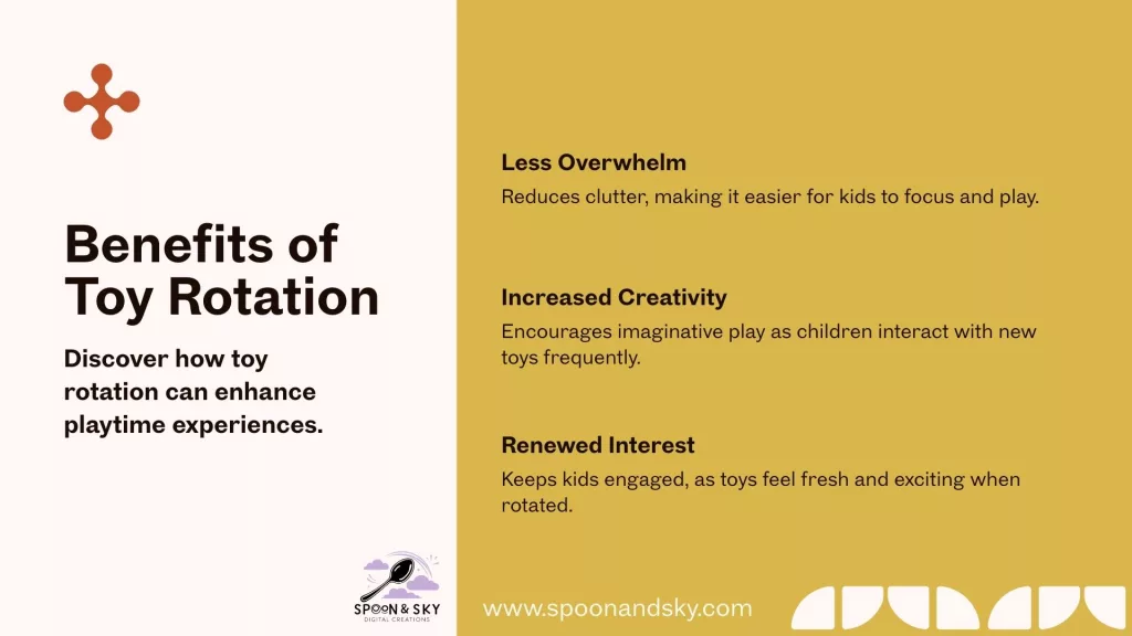 - Renewed interest: When a stored toy comes back weeks later, it feels exciting and fresh again.