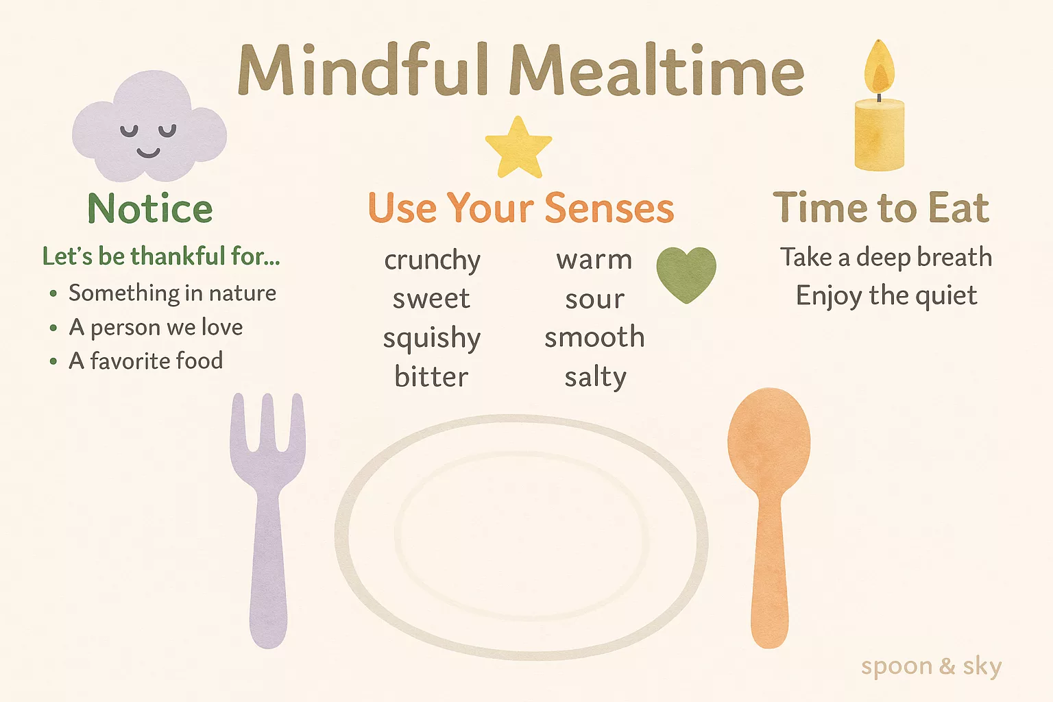 Rituals tell the body it’s time to shift gears. When mealtime begins with calm cues, children enter the space ready to engage.