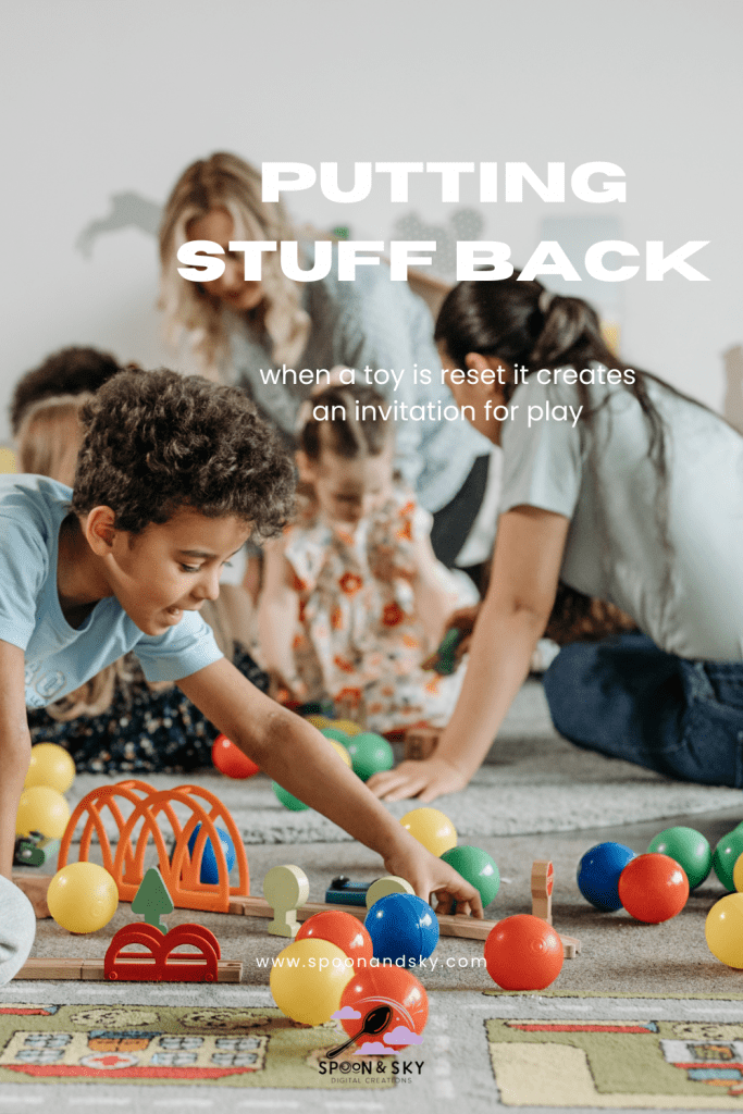 Nursery schools have long understood this. After every session, staff carefully “reset” toys back into their places. A train track is dismantled and stacked neatly. Blocks are returned to their baskets. Craft materials are laid out tidily, ready for curious little hands. This “resetting” isn’t about tidiness for its own sake — it’s a powerful invitation to play again the next day.