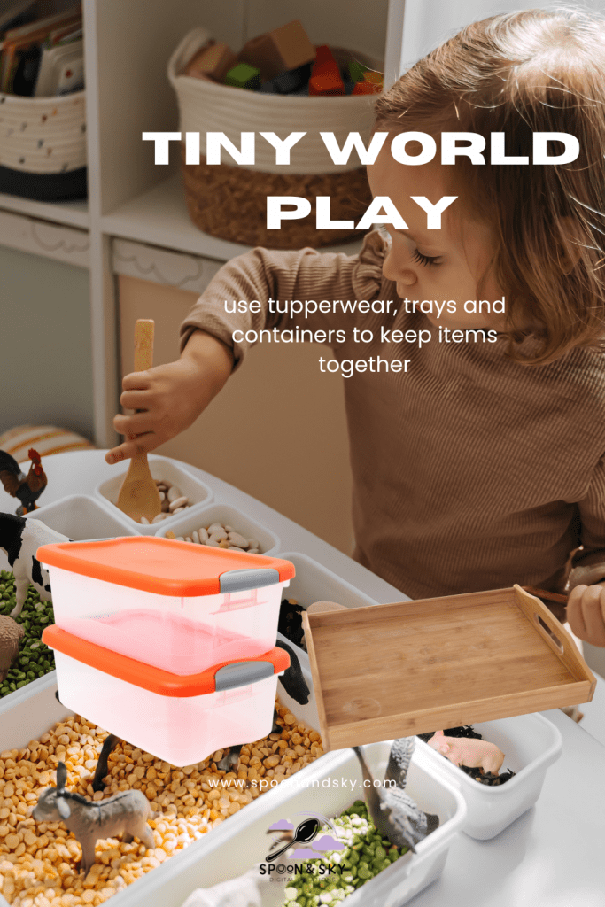 - Pair with scenery. Store play figures near a basket of scarves (for rivers, mountains, oceans) or blocks (to build houses).