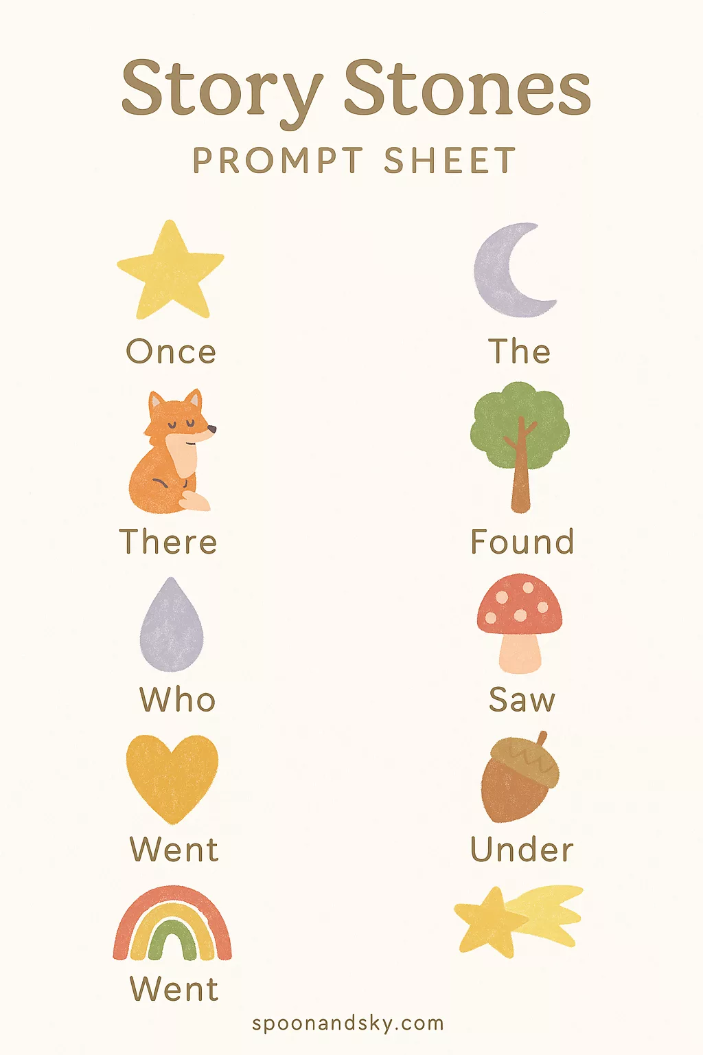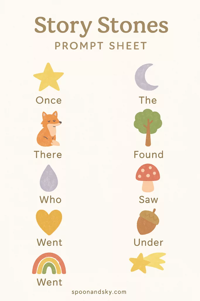 🪄 Download our printable “Story Stones” Prompts — perfect for stones found on forest walks or garden adventures. I’ve also added the Autumn Search List, which is great for short scavenger walks.