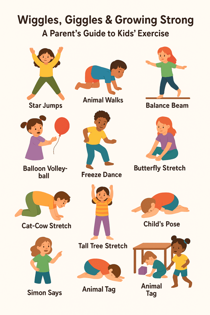 Exercise isn’t about six-packs or scores at this age. It’s about planting seeds: that moving feels good, play is part of health, and their body is something to be celebrated. By keeping exercise playful and inclusive, you’re not just raising active kids — you’re nurturing confident, resilient humans who know the joy of moving their bodies.