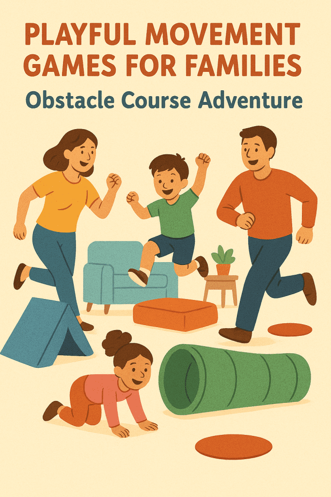 Use pillows, chairs, tunnels, or chalk outside to create a course: crawl under, jump over, balance, hop, spin. Kids love inventing the rules themselves.