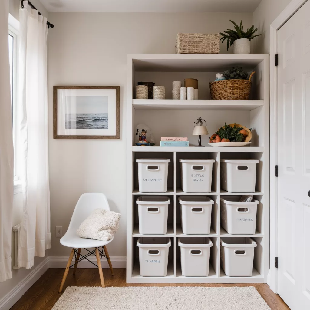 One of the most effective tools for organizing a tiny kids’ room is the Three Level Storage Strategy. It simplifies every decision about where items belong.