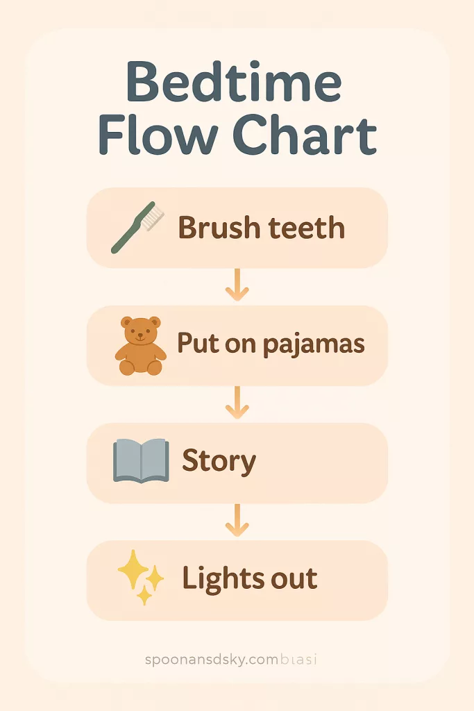 🪄 Download our printable “Bedtime Flow Chart” — a gentle visual routine for calmer nights, get it below: